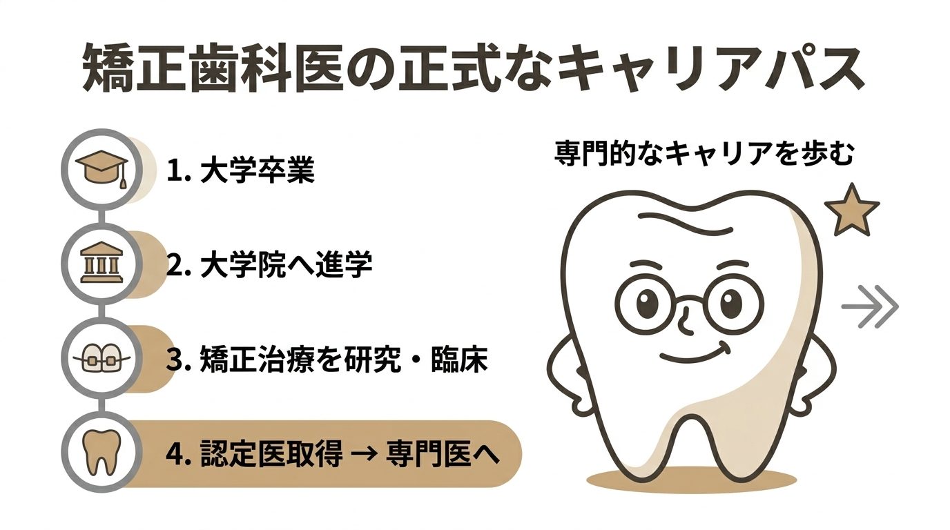 矯正歯科の認定医・専門医は、大学院で矯正のみを専門的に学び、学位と資格を正式に取得した、いわゆる「正規ルート」を歩んだ歯科医師です。