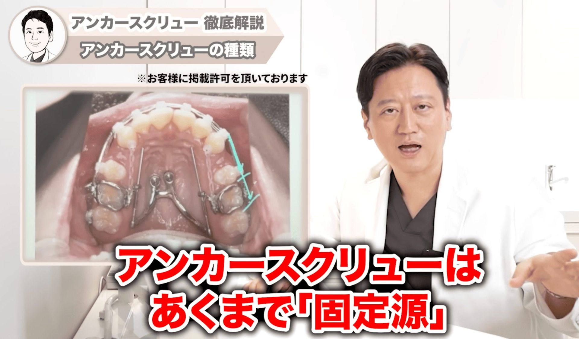 アンカースクリューはあくまでも固定源を増すための道具の一つです。これを使うことで矯正のスピードが自動的に上がったり、どんな症例でも必ず治ったりするわけではありません。