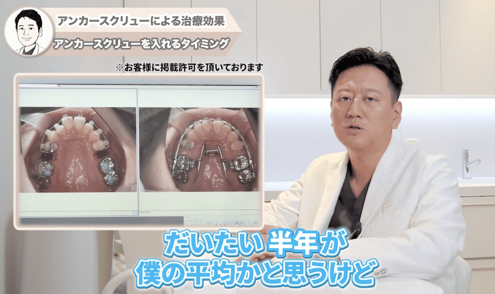 アンカースクリューは矯正開始直後から使うわけではありません。柴山院長の経験上、アンカースクリューを埋入するタイミングは矯正開始から平均して約半年後であることが多いです。