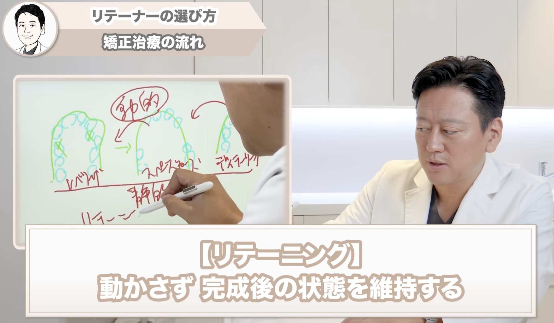 矯正治療の「動的矯正」が完了した後も、歯と骨はまだ安定しておらず、適切な保定をしなければ元の位置へ戻ろうとする力が働き続けます。歯を動かすプロセスには段階があります。まず歯のガタつきをそろえる「レベリング」、次に抜歯で生じたスペースを閉じる「スペースクローズ」、そして上下の噛み合わせを最終調整する「ディテーリング」です。これら3つの段階をまとめて「動的矯正」と呼びます。