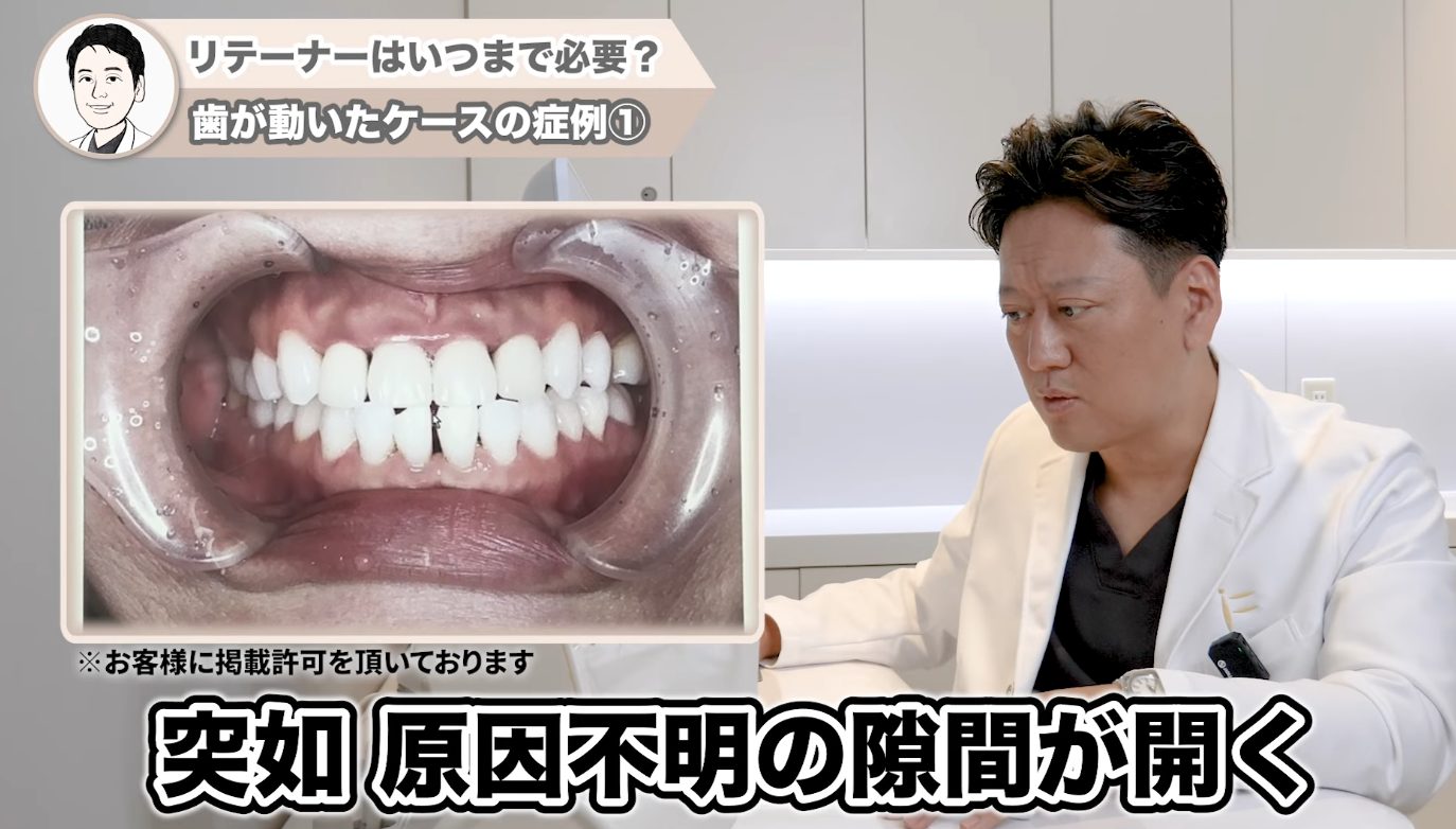 一般的には矯正に要した期間と同じ、あるいは2年程度と言われることが多い保定期間ですが、実際の臨床現場ではその期間を過ぎても歯が動いてしまうケースが多々見受けられます。多くの教科書や論文では、矯正期間と同程度の保定を推奨していますが、人間の体は機械ではないため、数年で完全に固定されるという保証はありません。特に成人の場合、骨の代謝や周囲の筋肉の影響を強く受けるため、数年の保定で安心してしまうのは非常にリスクが高いと言わざるを得ません。