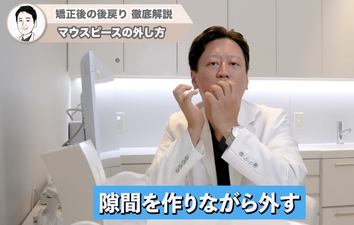 正しいリテーナー 外し方のポイントは、一箇所だけに強い力を集中させず、左右の数カ所に指をかけて少しずつ浮かせながら全体を外すことです。多くの方がやりがちな、片側の端だけを強く弾いてパチンと外す方法は、装置の同じ箇所に繰り返し過度な応力をかけることになり、破折や変形の直接的な原因となります。少し浮かせたら別の場所に指をかけ、徐々に全体を浮かせるという丁寧な動作を習慣づけるだけで、マウスピース型リテーナーの耐久性は飛躍的に向上し、余計な作り直しのコストを抑えることが可能になります。